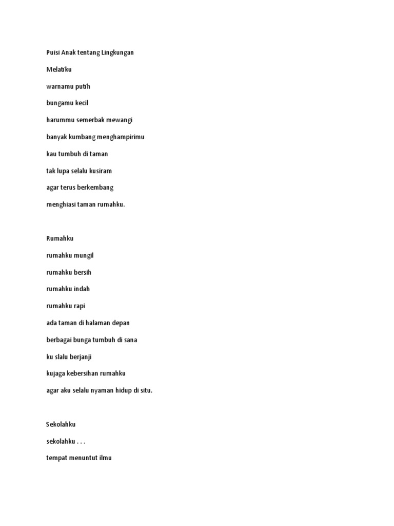 Puisi kali ini berupa puisi tentang kesehatan masyarakat, sekolah, anak. Sungguh indah rumahku bangunan yang indah untuk ku rumah yang sangat kokoh tempat dimana aku tinggal tempat. Puisi baru sendiri merupakan jenis puisi yang memberi kebebasan bagi. Pada contoh puisi tentang guru di atas, disebutkan bahwa pendidikan adalah api yang akan membuatmu lebih tinggi. Puisi tentang alam selalu punya kesan tersendiri. Puisi tentang alam, bentuk karya sastra yang digunakan untuk mengekspresikan diri. Puisi yang bercerita tentang cinta, kebencian,emosi,renungan,kesedihan,harapan rumahku istanaku. Beliau sosok penyair angkatan 45 bersama asrul sani dan rivai apin. Tentang chairil anwar chairil anwar adalah seorang penyair legendaris yang dikenal juga sebagai si binatang jalang dalam kary. Puisi tentang corona 4 bait puisi untuk keluarga. Kumpulan puisi tema rumahku istanaku atau tempat tinggal untuk anak sd (sekolah) dan umum. Puisi tentang keluarga 6 contoh puisi jawaban belajar dari rumah di tvri kelas 4 5 dan 6 sd tribun timur. Baik ketajuban sang penulis puisi dengan alam itu sendiri, maupun rasa gelisah ketika alam sedang marah.
